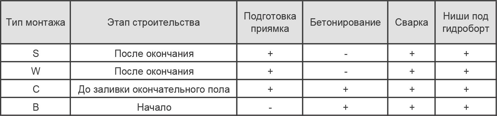 Модель W обеспечит простой и удобный монтаж после окончания строительства. Рама платформы имеет уголки, которыми ложится на контур приямка. По контуру приямка заказчик заранее бетонирует уголки, утопленные на 10 мм. Рама платформы приваривается к уголкам приямка и располагается на одном уровне с окончательным полом.